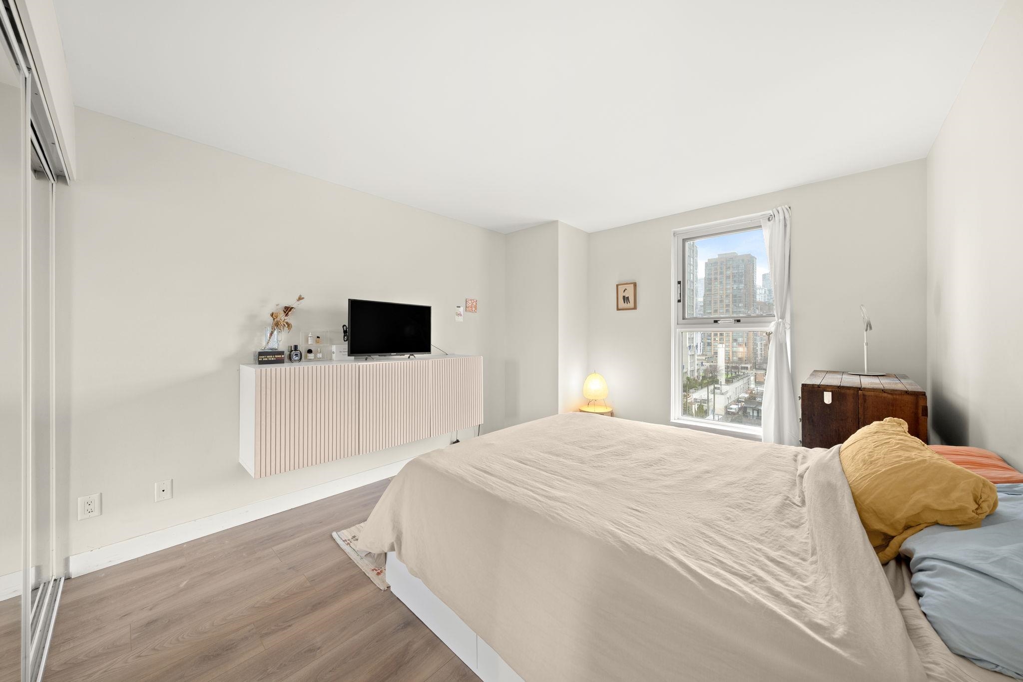 Welcome to Pacific Point II in the heart of Yaletown. This spacious 1 bedroom + den home offers a bright, functional layout w/ floor-to-ceiling windows in the multi-purpose den that bring in plenty of natural light. The open living & dining areas provide comfortable everyday living & space to entertain. The kitchen offers ample cabinetry, quartz counter tops and stainless steel appliances. Laminate flooring throughout for easy maintenance. Extensively renovated by Bosa in 2013 w/ updated interiors, re-piping & upgraded systems. Fully rain-screened w/ new windows completed in 2022, offering long-term confidence in this well-maintained concrete building. Amenities include concierge, indoor pool, hot tub, sauna, fitness centre & clubhouse. Parking & storage included.