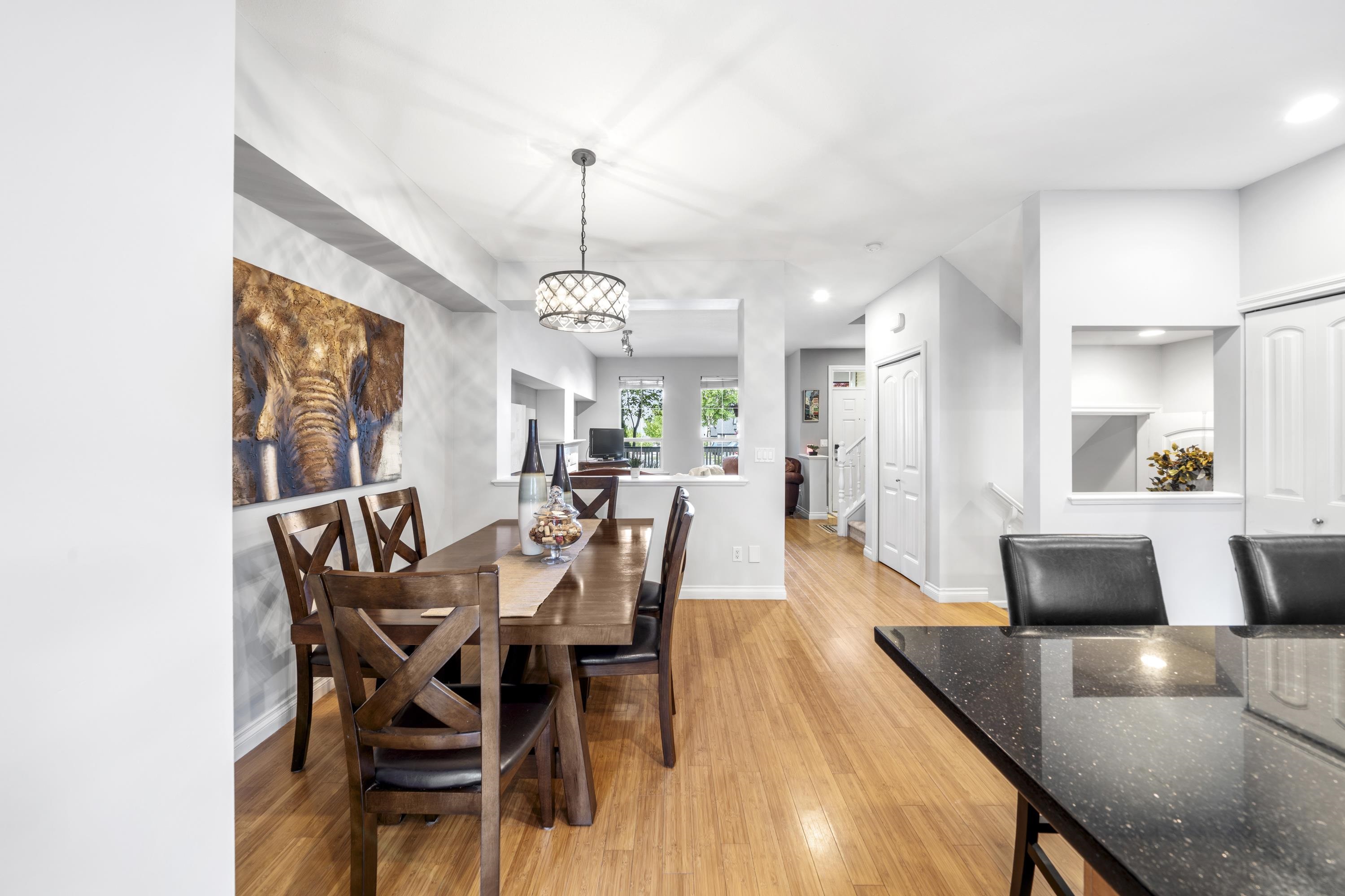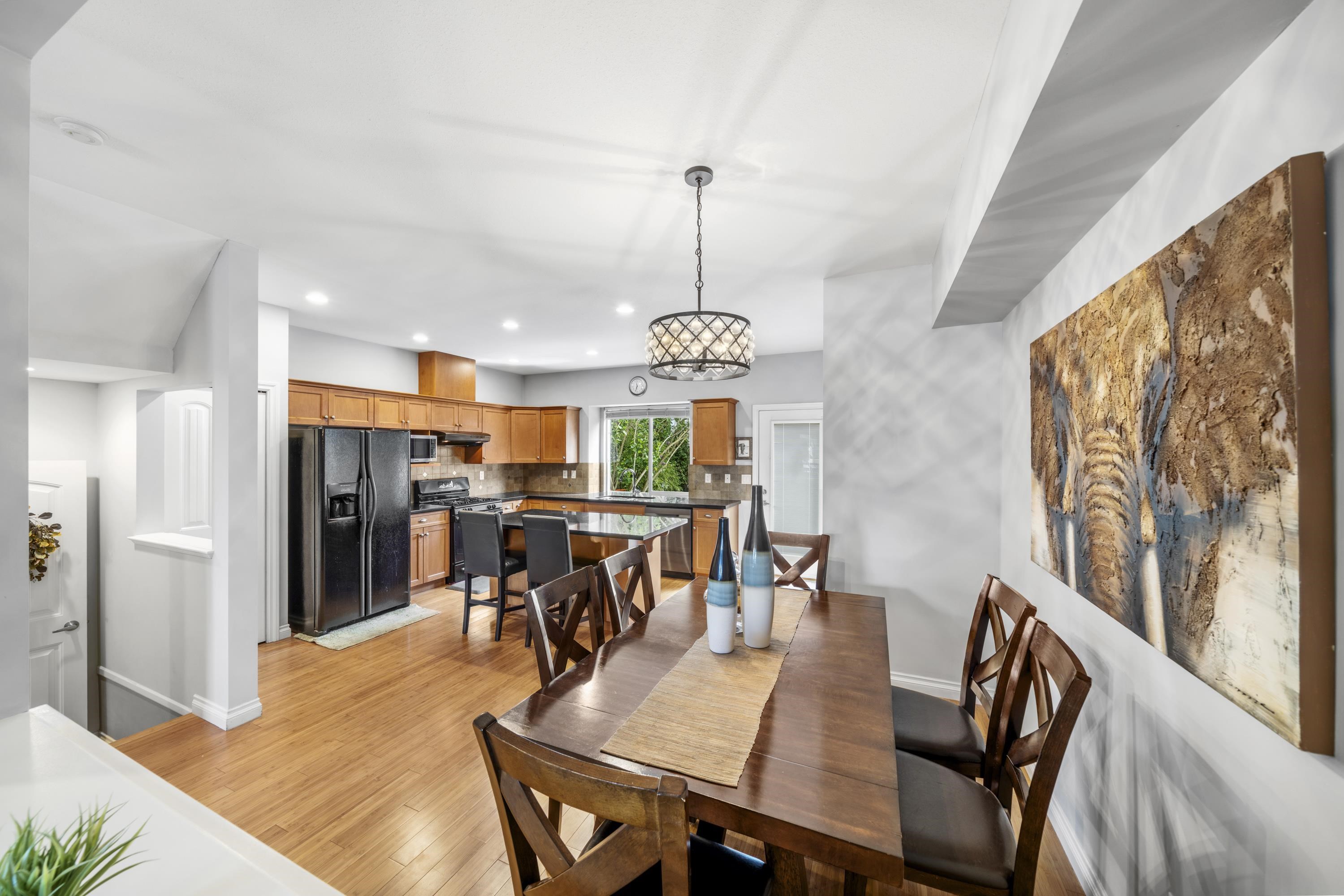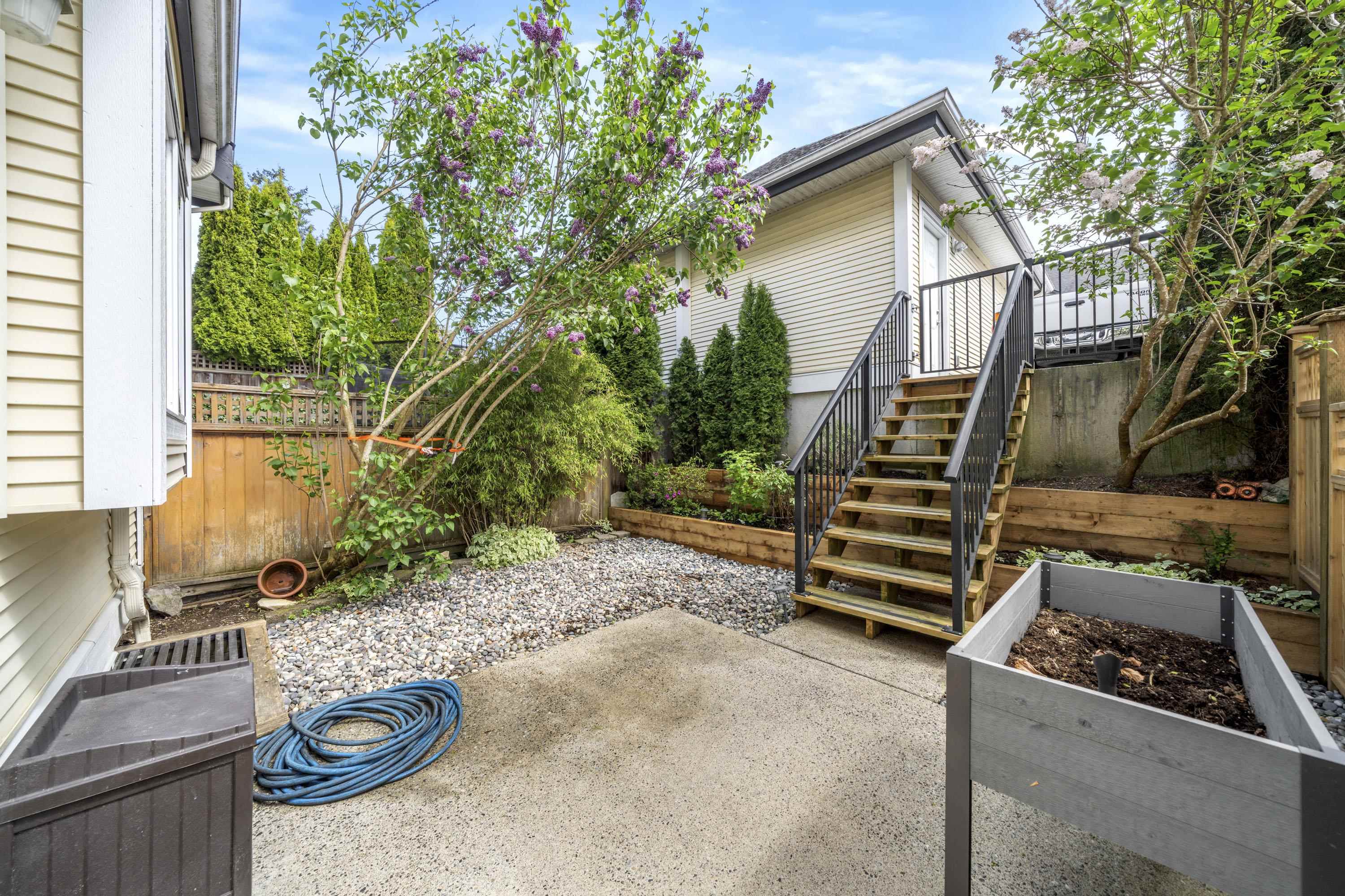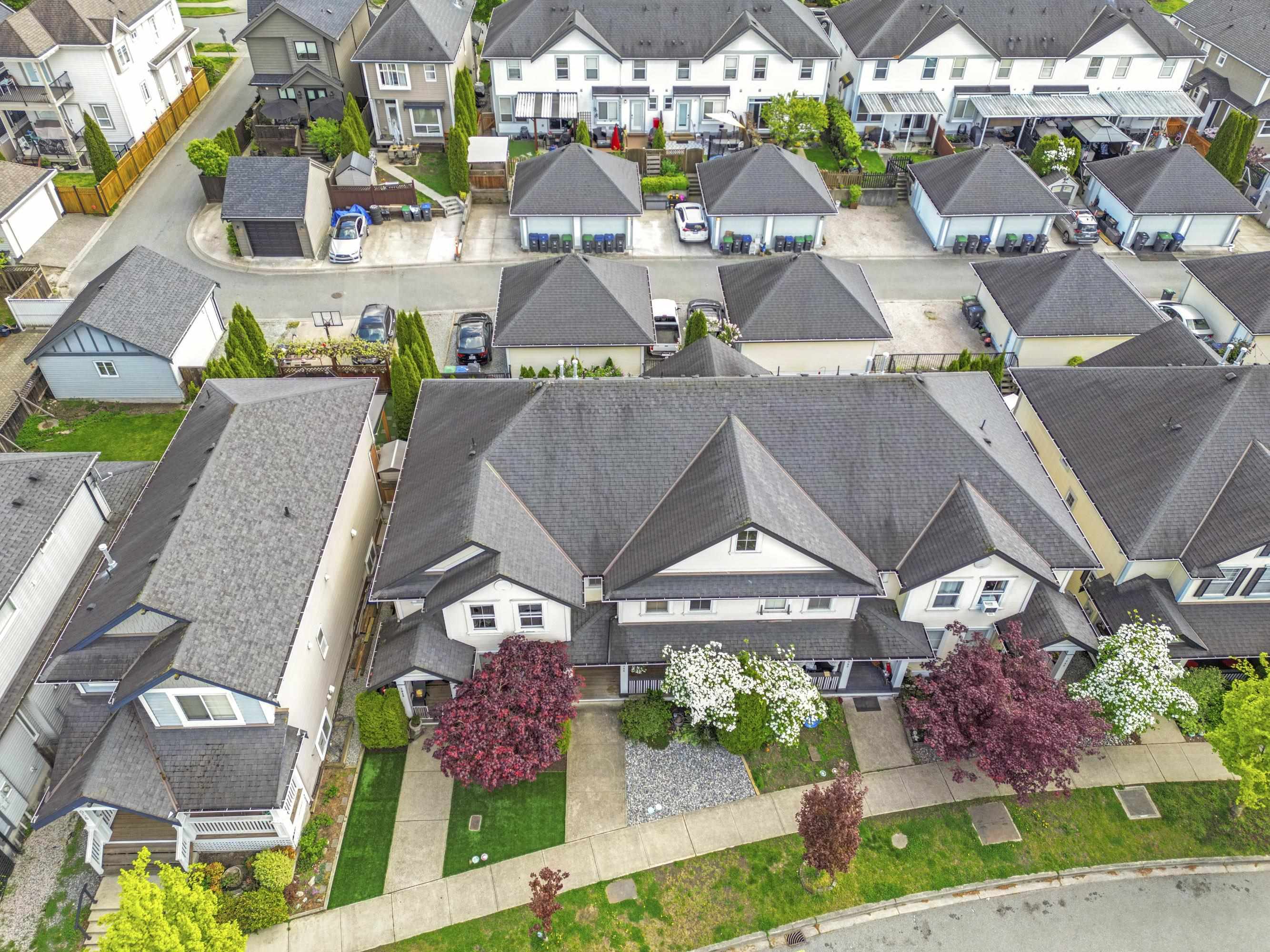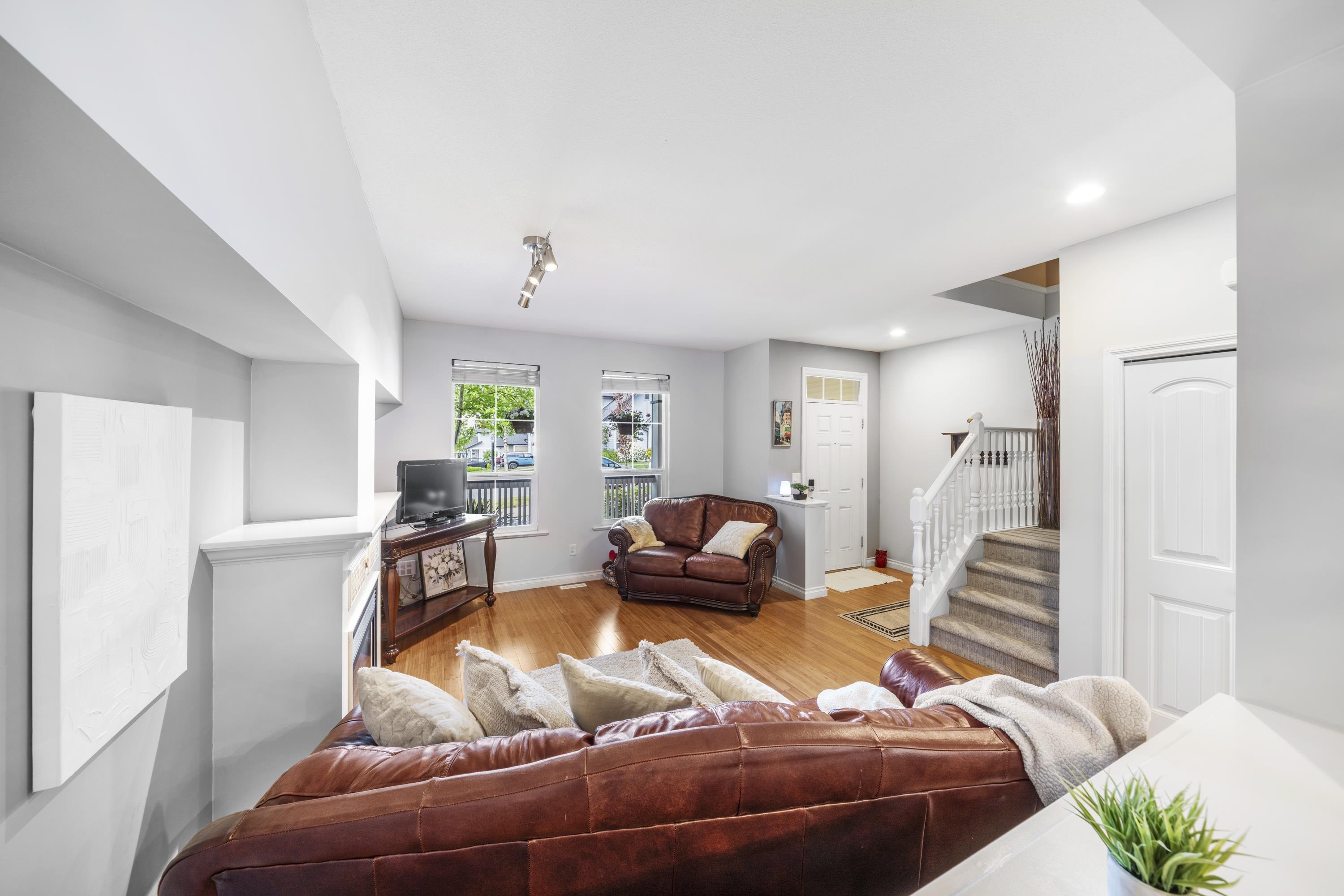 Welcome to The Terraces at Provincetown! This well-built, 4 bdrm, 3 bath row home comes with NO strata fees. The bright, open-concept main floor features a spacious living room with a cozy gas fireplace, a generous dining area, and a large kitchen-perfect for both everyday living and entertaining. Upstairs, the primary bedroom boasts vaulted ceilings, a walk-in closet with a window, and a private ensuite. The basement offers a rec room, the 4th bdrm and a bath, ideal for guests or a home office. Enjoy a fully fenced backyard with lane access to a detached single-car garage and additional side parking. Located in a family-friendly neighbourhood close to schools, parks, trails, and highways for easy commuting.